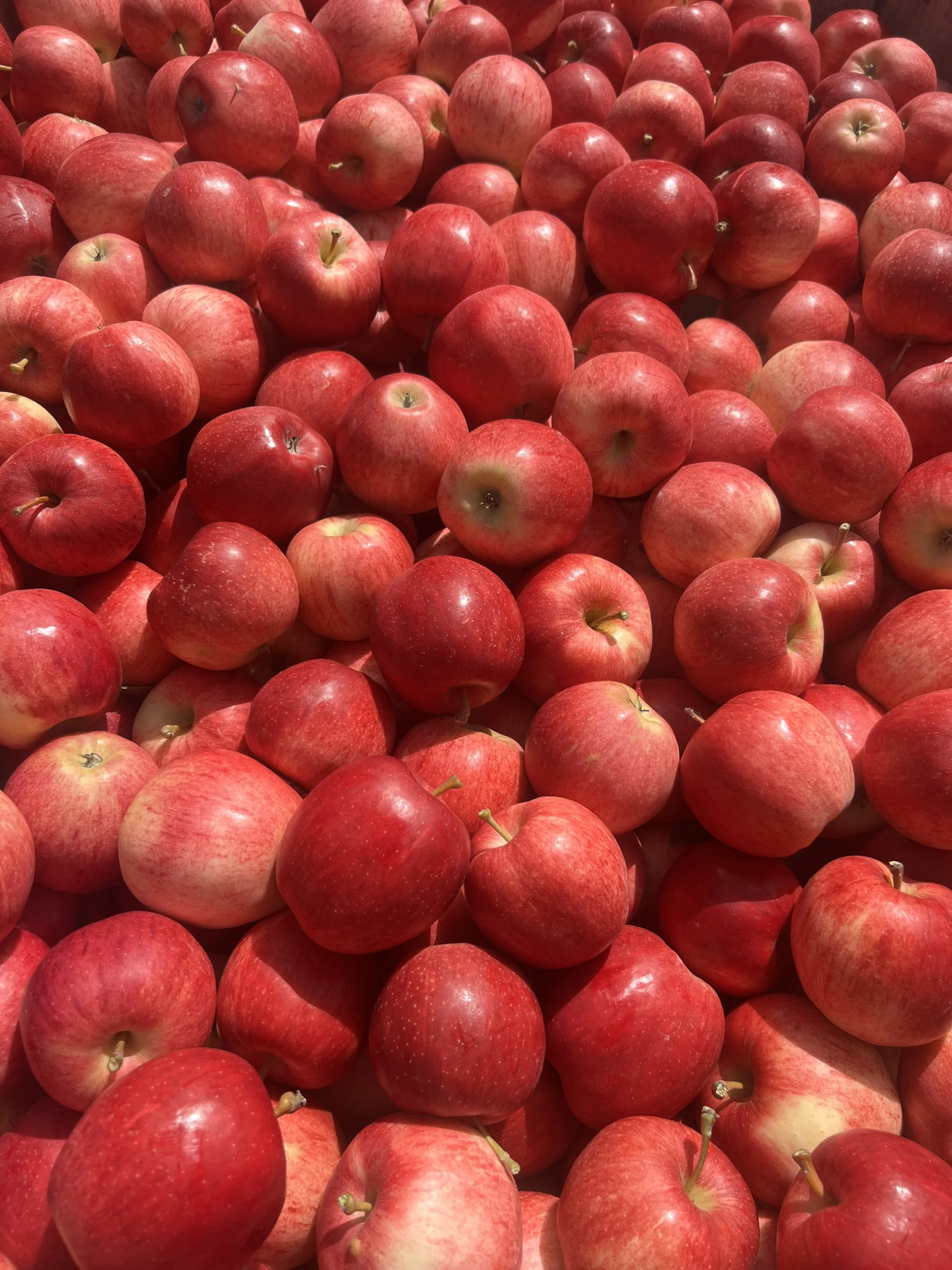 Gala is an aromatic apple and a favorite of children who visit the orchard. It has an orange color and a sweet, crisp flavor. According to the US Apple Association, the Gala is the most commercially grown apple in the country. This tends to be a smaller apple, just the right size for lunch boxes. Harvest begins early September.