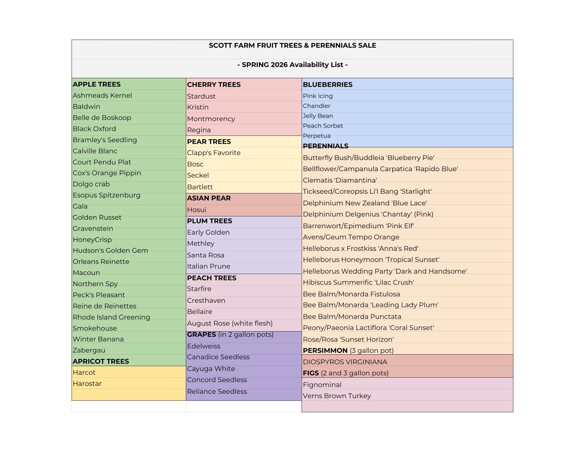 At the bottom of this page, you can check out this year’s complete collection of trees, varieties, and perennials.